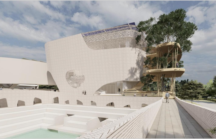 Library, Museum, Theatre, Experimental Theatre, Kids' play area, step well, and three